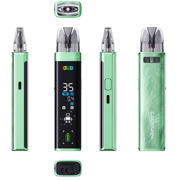 Uwell Caliburn G3 Pro Pod e-cigareta s kapacitou baterie 1000mAh a elegantním hnědým koženým designem. Vybavena velkým LCD displejem a USB-C portem pro rychlé nabíjení.